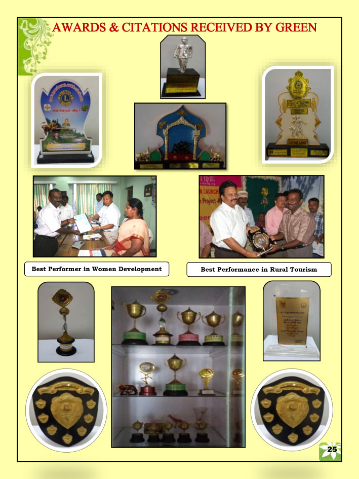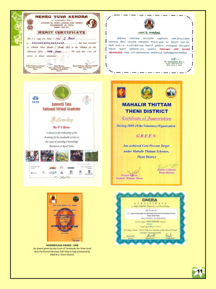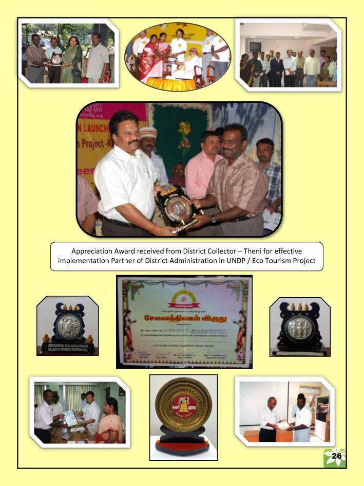 2011 District Level Best NGO Award Achievement award and shield received from District Collector, Theni